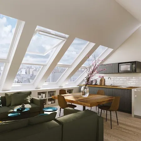 This apartment features a kitchenette area with a toaster and a dishwasher. The apartment is located 0.2 miles from Madeleine metro station.